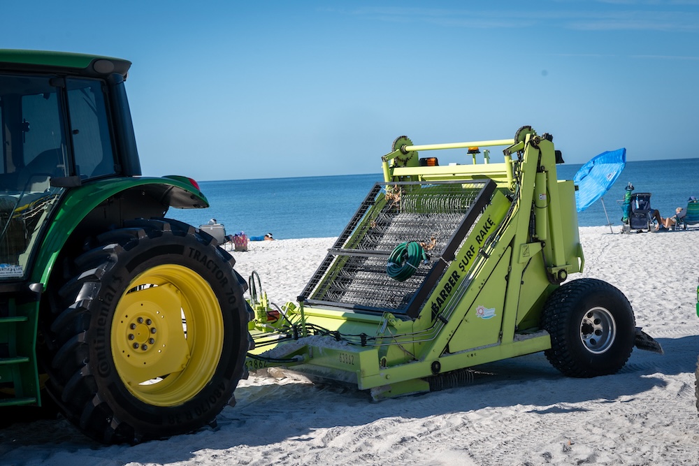 First, the debris had to be collected and removed from our sand as an entire area of the Gulf was deposited on our beaches. That process began with a beach raking system, using small tines and tills to reach down about two inches below the sand, sifting through it. Then, the sand traveled by conveyor belt as it lifted the unwanted material for storage and deposited elsewhere, leaving only “clean” sand behind. The tractor crews made several passes through the sand ensuring that powdery soft sand was softer and cleaner than ever.