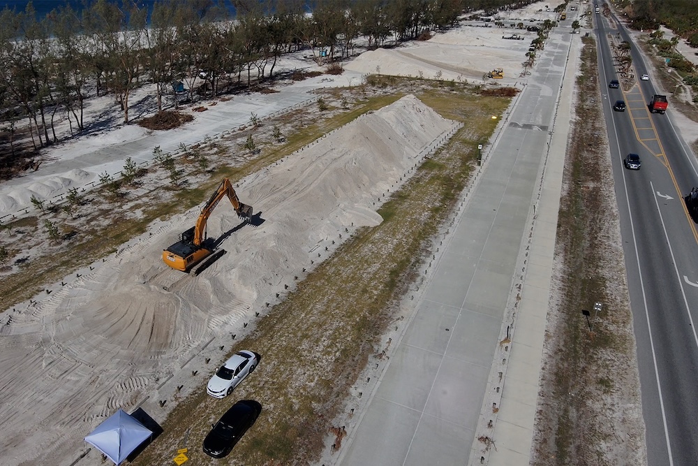 Some sand did not meet the standards to be processed and placed back onto our coastline. Any sand that may have washed into commercial properties, parking lots or residential spaces was deemed unsafe as it could be contaminated with broken glass, nails, plastics or any other foreign objects. Recycling the sand is another example of putting our ‘Love It Like A Local’ principles into action where will be used rebuild upper Manatee Road.