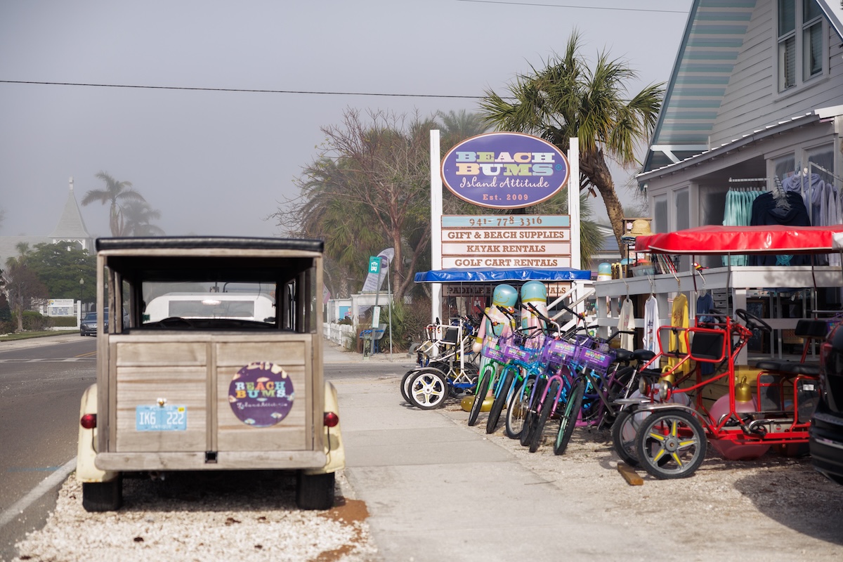 Want an eco-friendly way to travel from boutique to boutique? Beach Bums is the way to haul all your newfound ‘fits and furnishings. They have an expansive fleet of electric-only golf carts (street-legal on Anna Maria Island) and bikes, along with paddle boards and kayaks. Don’t worry about packing any beach supplies – Beach Bums has you covered with its gift shop to help commemorate your trip with souvenirs.