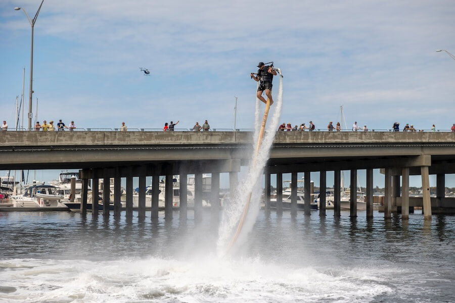 Watch as world fly-boarding Champion Kristen Smoyer skies 80 feet into the air on an elevator of water in one somersaulting sequence of acrobatic moves. Then marvel at all the fun four-legs can conjure up in the Frisbee® flying, canine trick antics of Team Zoom and Daredevil Dogs. Plus cool kids zones on both shores of the river and enough food and drinks to satisfy appetites large and small.