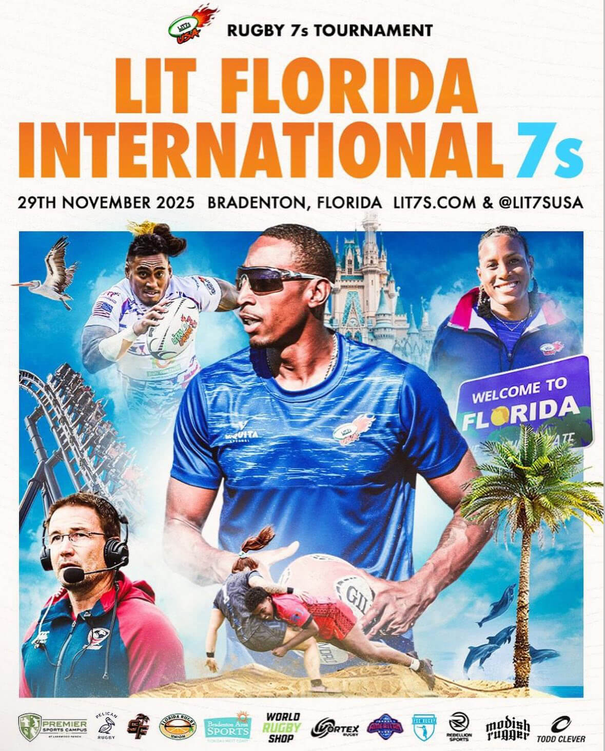 LIT7s, Europe’s largest and most dynamic rugby sevens series, is hosting its first-ever U.S. tournament, the LIT Florida International 7s, on Saturday, November 29, 2025, at the Premier Sports Campus in Bradenton, Florida.