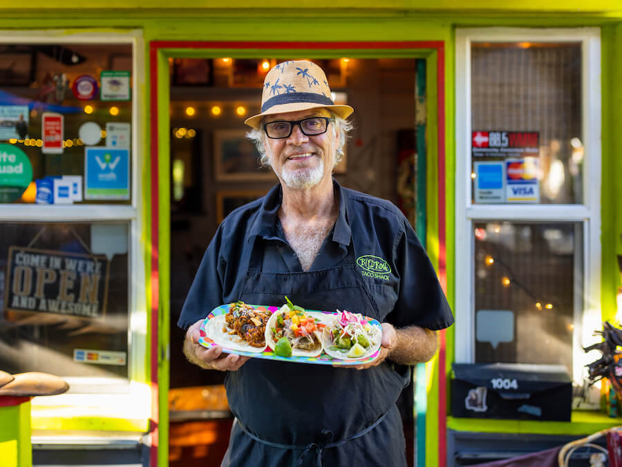 The bright, California-style taco shack features cool, Southern California inspired tacos with Mexican, Japanese, Chinese, and Italian influences. Awesome Food!