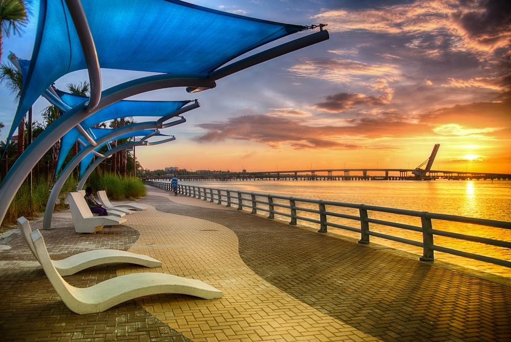 The Bradenton Riverwalk is a 2.03-mile stretch of land lying between the Green and DeSoto bridges along the banks of the Manatee River. It is a major expansion of Rossi Park. Visitors can enjoy a safe walking path along the river, fishing, interactive public art, a splash pad and playground, beach volleyball, a skateboard park, entertainment events and many educational activities along the way.