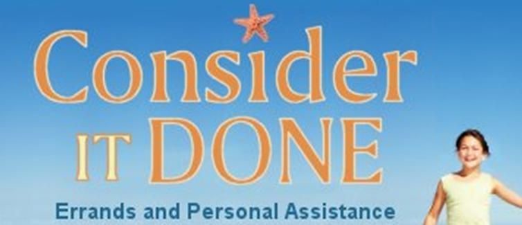 Consider It Done - Errands and Personal Assistance Many services offered for residents and vacationers. Serving Manatee county and the Islands. Services include transportation, shopping, property monitoring, errands, wedding planning and assistance, vacation preparation assistance, tours and more.