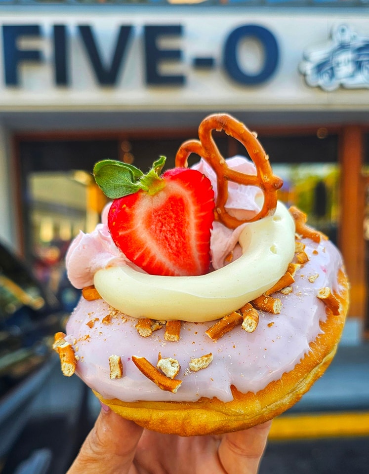 At Five-O, we have been perfecting the art of donut making for over 8 years. Our team of experienced bakers use traditional techniques and high-quality ingredients to create donuts that are soft, fluffy, and loaded with creative flavors. Whether you’re in the mood for a classic glazed donut or something more adventurous like our bacon maple donut, we have it all. Check out our socials for our limited engagement Most Wanted lineup and come capture these Arrestingly Good Donuts that are totally worth the pursuit!