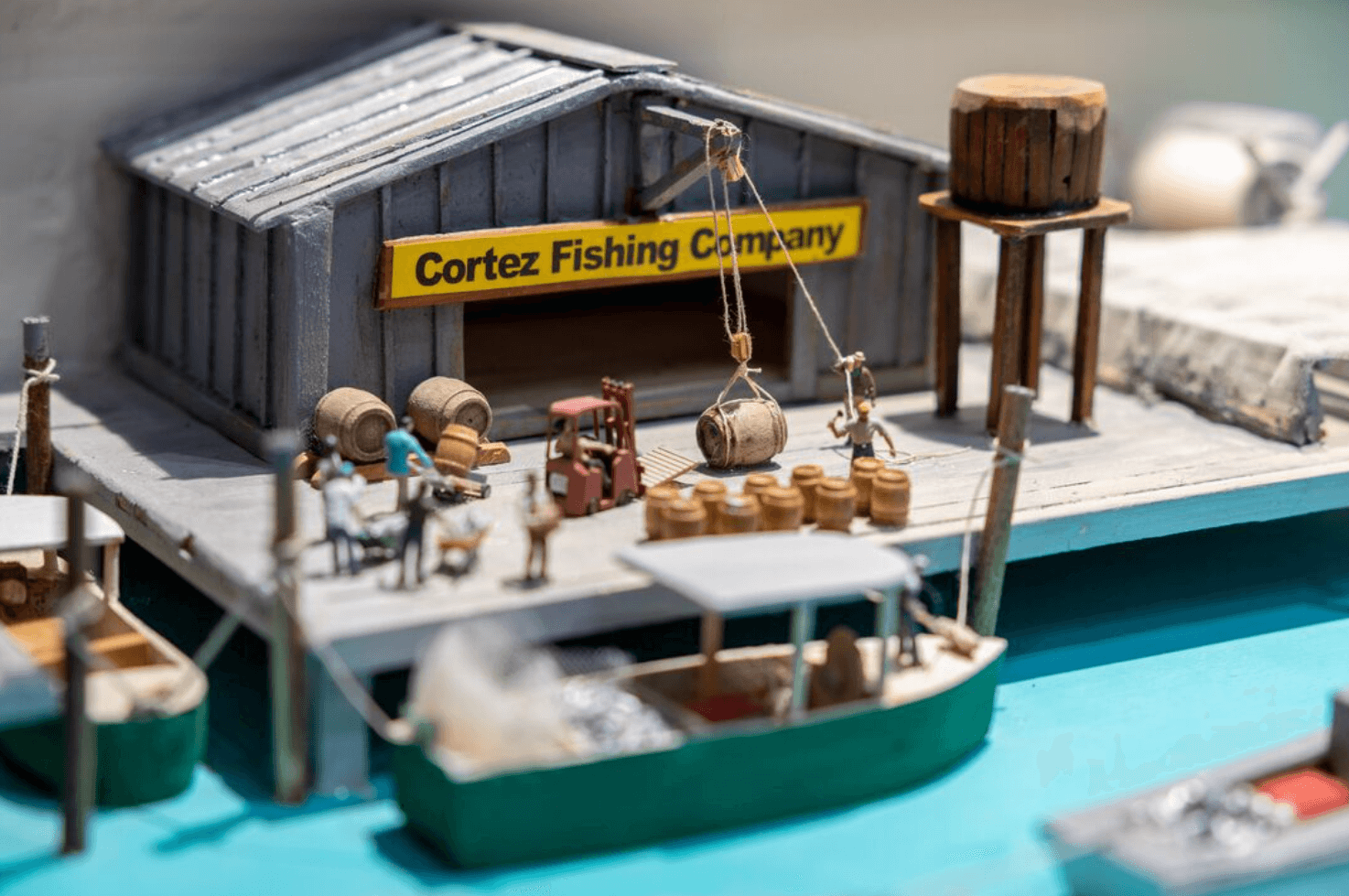 A historic wooden cistern stands behind the store, once used for drinking water in Cortez’s early days. To the east of the property, a replica of a Seminole chickee hut provides some welcome shade to relax and enjoy the sounds of nature. The 1907 Pillsbury Boatshop on the north corner of our grounds was the first building constructed at what is now Snead Island Boat Works, operated by Edward Pillsbury and his son, Asa Pillsbury. It was relocated to FMM grounds in 2007.