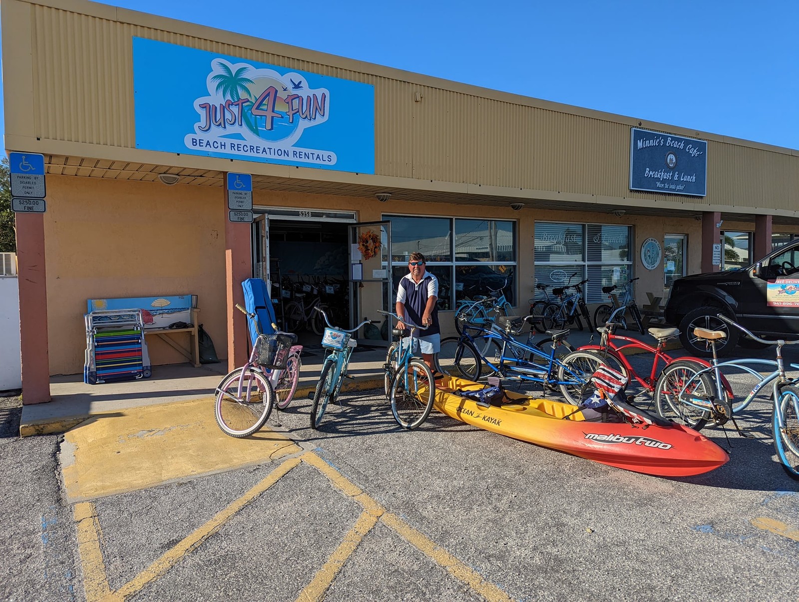 Let our Fun Experts help you gear up for a good time! The Just 4 Fun team has years of experience finding fun things to do on Anna Maria Island. Relax on the beaches; tour the island; explore Jewfish, Egmont, or Passage Keys; cruise the Inter-Coastal Waterway or trek Robinson’s Preserve. We will help you create life-long memories during your stay. Free Delivery to your Home or Vacation Spot!