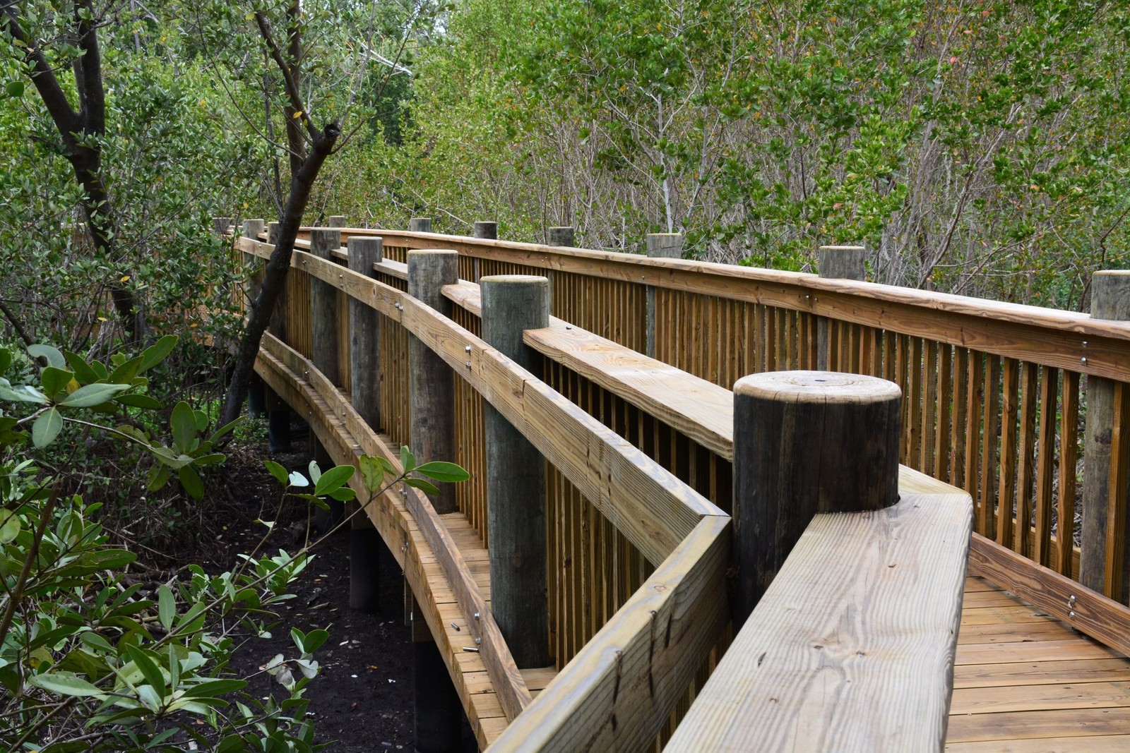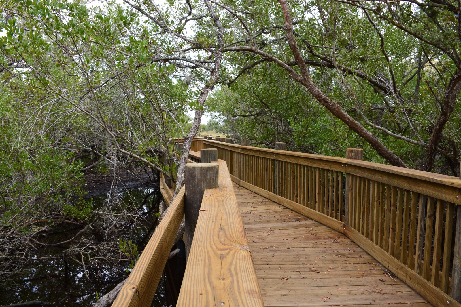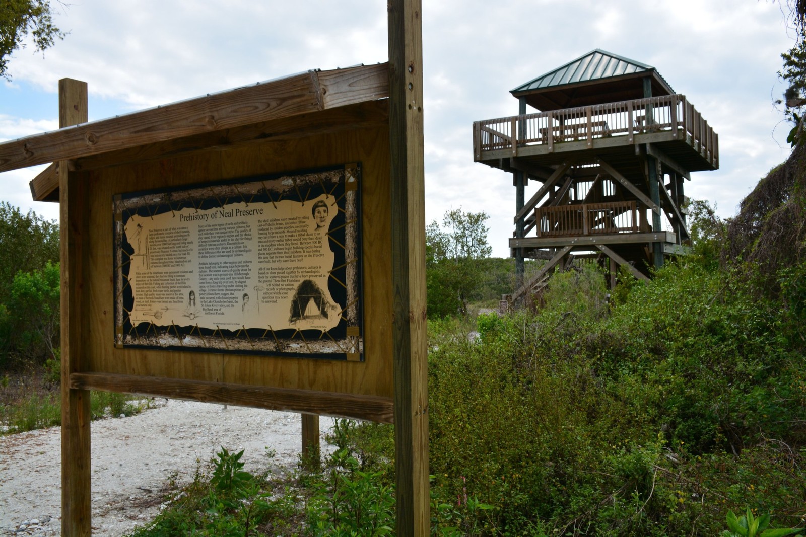 Neal Preserve’s 120 acres include both coastal habitats, such as mangrove forests and salt terns, as well as pockets of oak hammock uplands. The site features passive outdoor recreation opportunities including a 20 foot tall observation tower, 0.3 mile shell trail loop, and boardwalks that wind through the coastal environment. Located on the south side of Manatee Avenue, overflow parking is available on the north side of the Anna Maria Island Bridge. There is one portable restroom in the parking area. Neal Preserve is a very historically significant site. As you walk, imagine the active Native American culture that once existed here. Your route will move past reconstructed burial mounds (the originals were excavated in the 1930’s by the Smithsonian) through an area inhabited from 3000 BC to 1400 AD. Remember all of these are protected and collecting is not allowed in this “open air museum.” Due to the sensitive nature of the habitat and nesting bird sites, pets are not allowed at Neal Preserve and bicycles are not allowed on trails and should be parked at racks provided. We encourage visitors to explore the half-mile of shell and boardwalk trail on foot and enjoy a peaceful recreation experience.