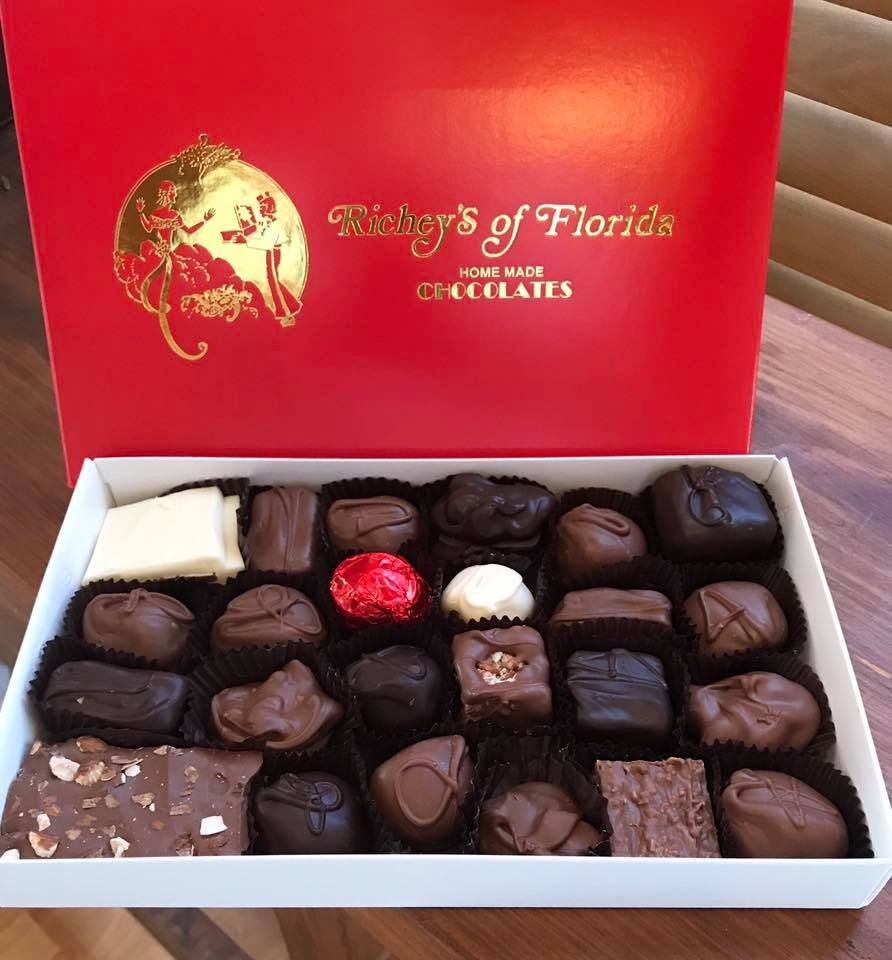 Richey’s remains one of the few candy shops in America offering hand made chocolates. The process is meticulous, ensuring that taste and freshness are uncompromised. We take great pride in providing the highest quality product using pure chocolate, real cream, fresh butter and fresh roasted nuts. Preservatives are never used in the creation of more than 130 varieties of chocolates: Milk Chocolate, dark chocolate, toffee, caramel, nut clusters, fudge, creams and more.
