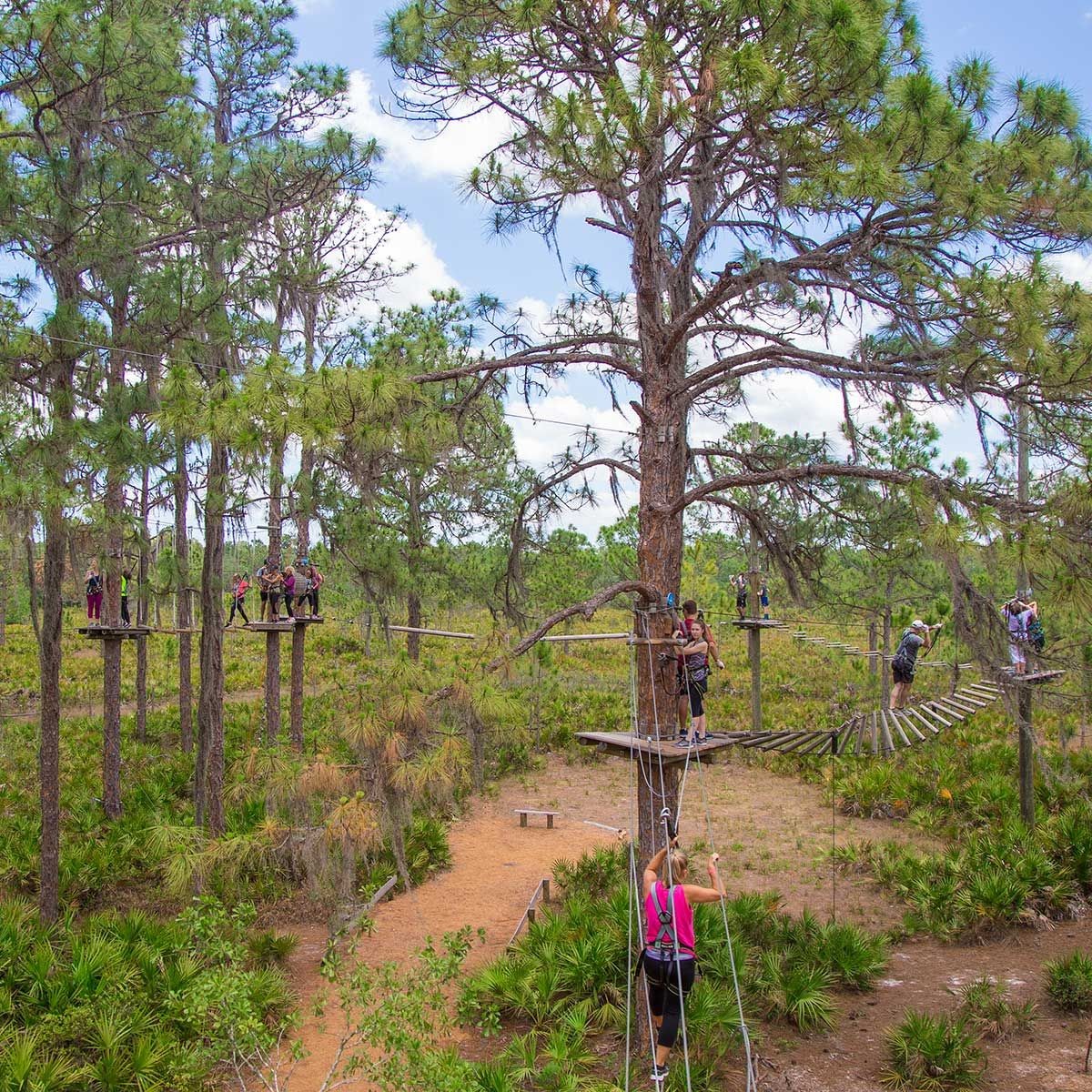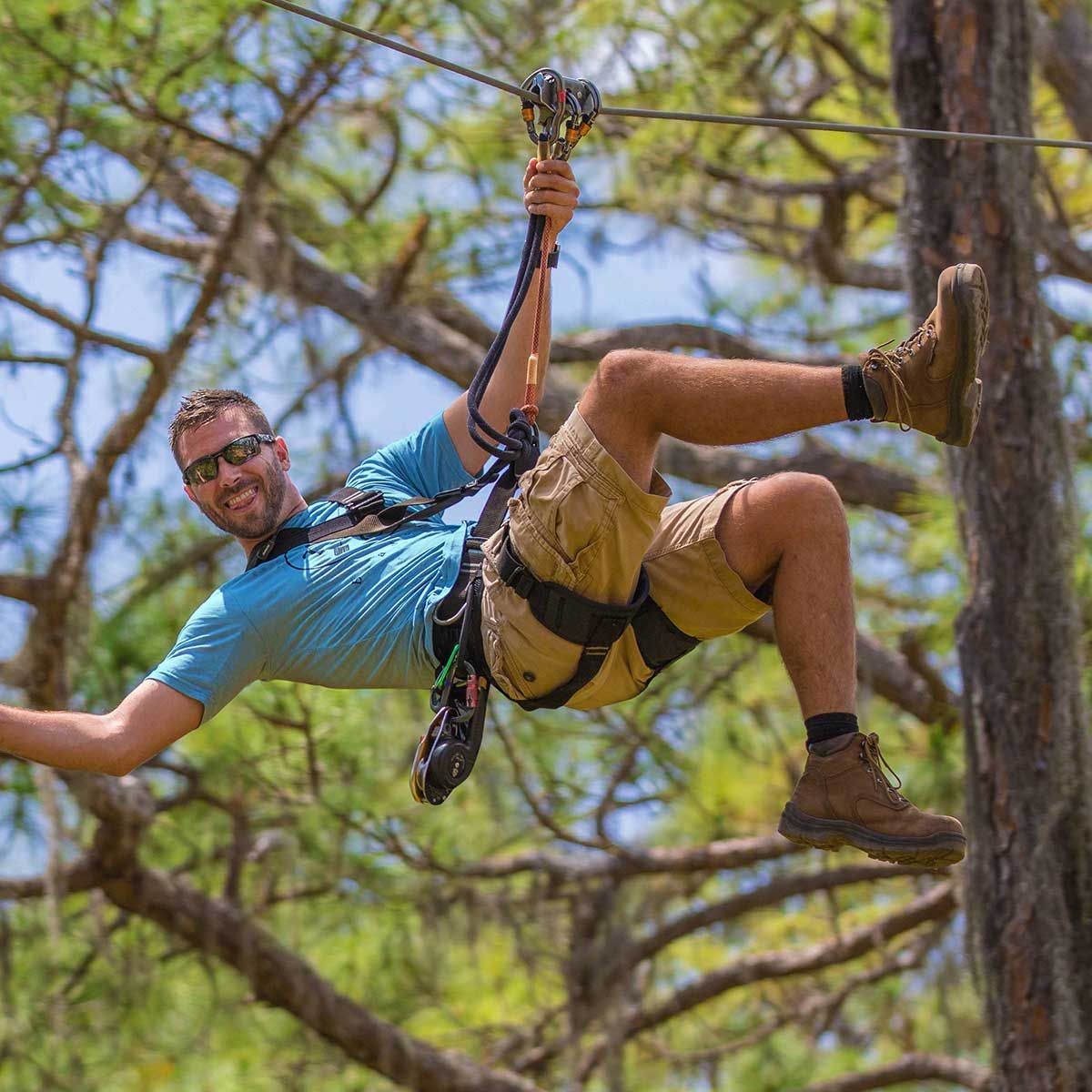 A day in the park just got a lot more fun. At TreeUmph! you’ll feel the exhilaration of climbing, zip lining, swinging and free-falling from 15 to 60 feet in the air…… all while harnessed to equipment designed with the most rugged materials and highest safety standards.