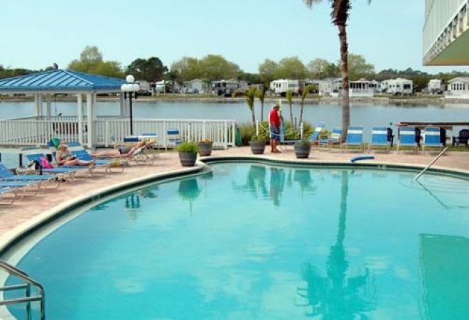 Large, asphalt sites, paved patio, 30/50 amp service, beautiful clubhouse, sparkling lake, two heated pools, Jacuzzi, ...